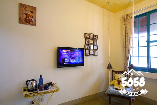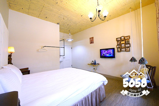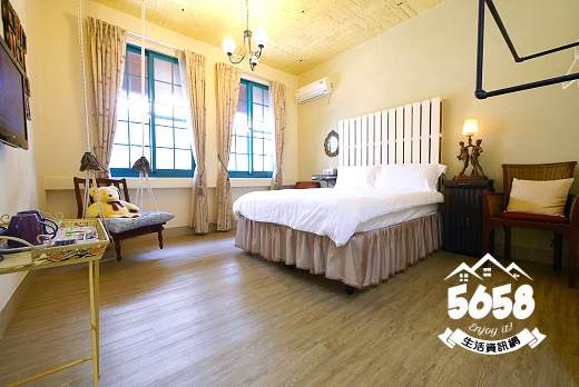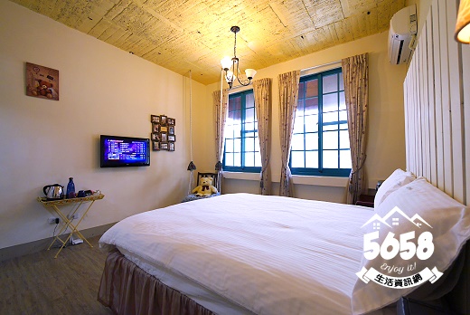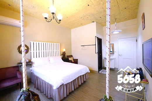 房型為浪漫風設計~由白與紫色搭配,地板是木質地板,深在其中不會有壓迫,髒亂的感覺
